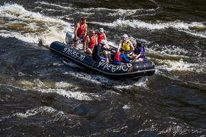 в-пятых на моторафте можно кататься в обычной одежде - без брызг (такую программу мы проводим даже зимой в мороз) или с брызгами, с головой влетая в большие валы (в таком варианте вы намокаете полностью и потом переодеваетесь, либо надеваете сухой костюм Угребись и после катания только снимаете сухой костюм Угребись и продолжаете свой отдых.)